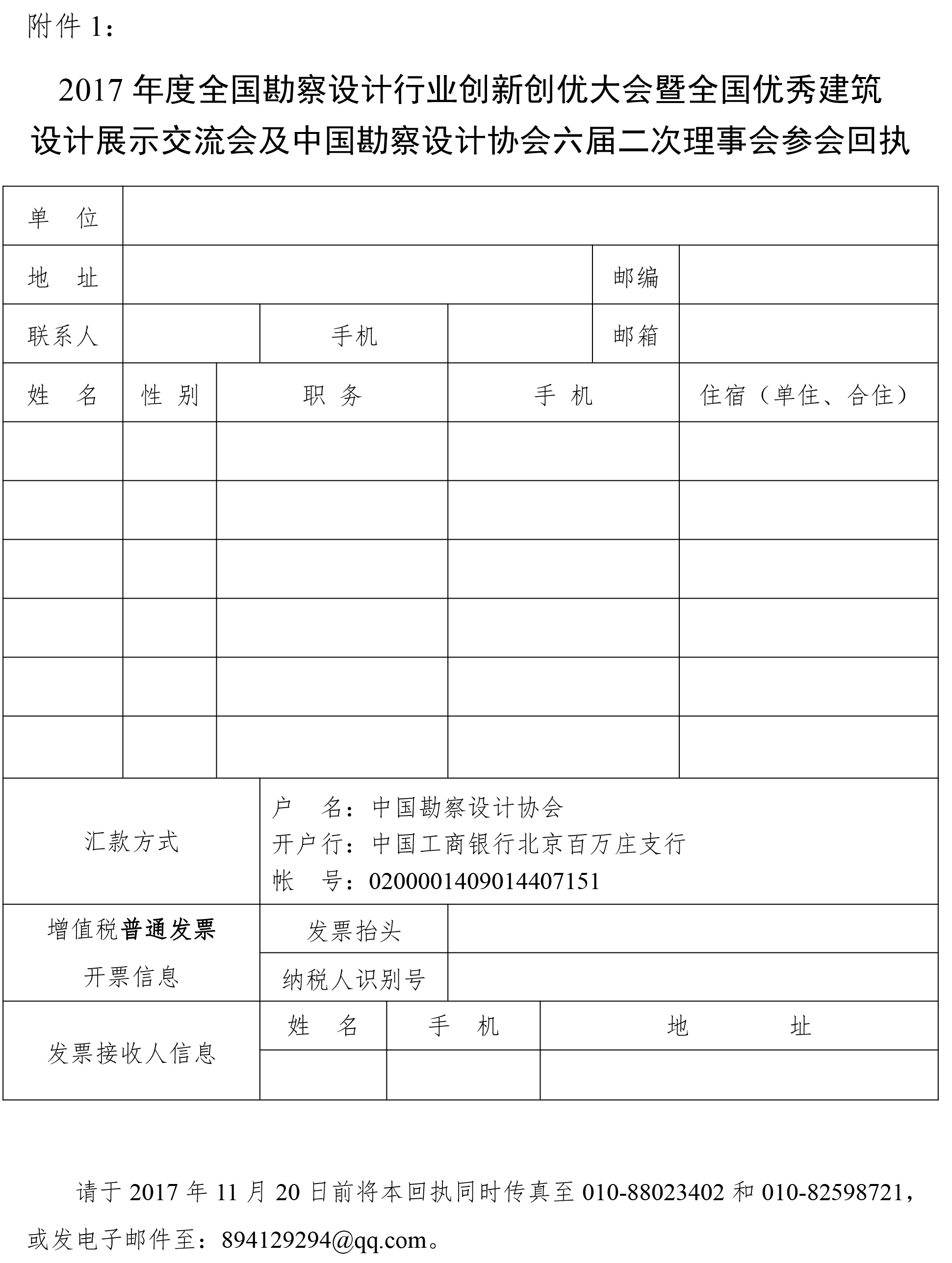 请参会人员于2017年11月20日前将参会回执(见附件1)发送至会议组织单位,逾期发送回执或未发送回执的,请自行预订住宿酒店。